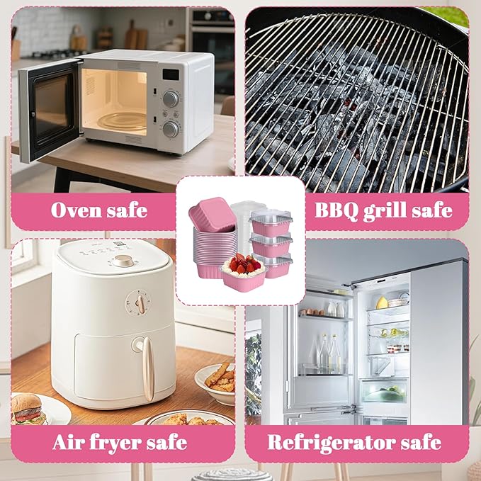 - Save cleaning time - Using these disposable square cupcake liners can eliminate the tedious cleaning work and allow you to focus more on the fun of baking. The disposable nature of the ramekins with lids is particularly suitable for large events and parties. The waterproof and oil-proof design of the mini pancakes supplies prevents food from penetrating and keeps the table clean