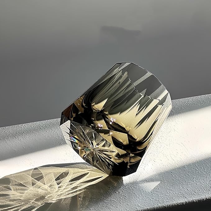 Crystal Whiskey Glass, Geometric Cut Design, Smoke Gray, 300ml Premium Cocktail Tumbler (gray)