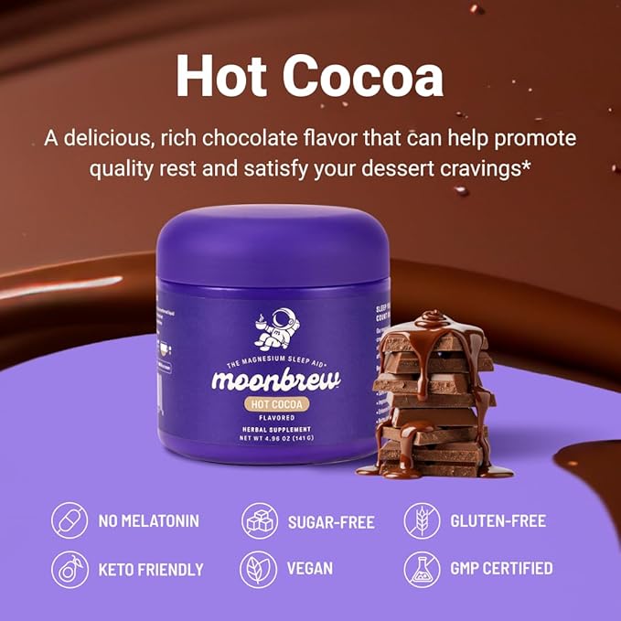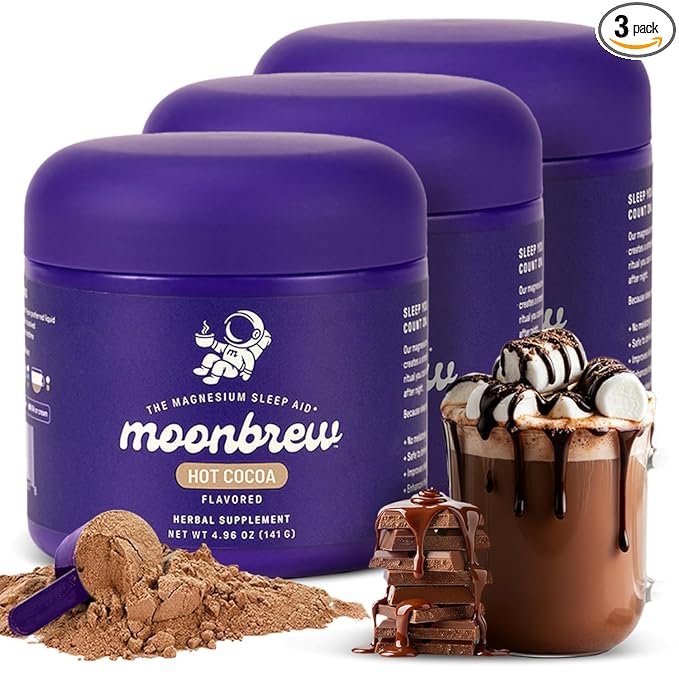 - Your New Nighttime Ritual: Unwind with MoonBrew Magnesium Hot Cocoa, a healthy, rich, velvety supplement blend designed to support deep relaxation and rest so you can fall asleep, stay asleep, and wake up feeling refreshed. Three jars. 90 servings.