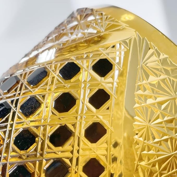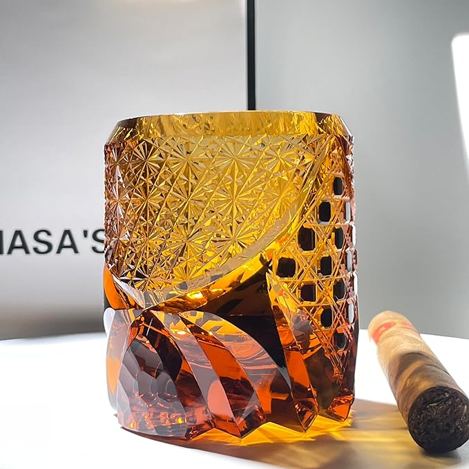 suigetsu Japanese Crystal Whiskey Glass, Cut Crystal Pattern, Luxury Cocktail Glassware (Amber)