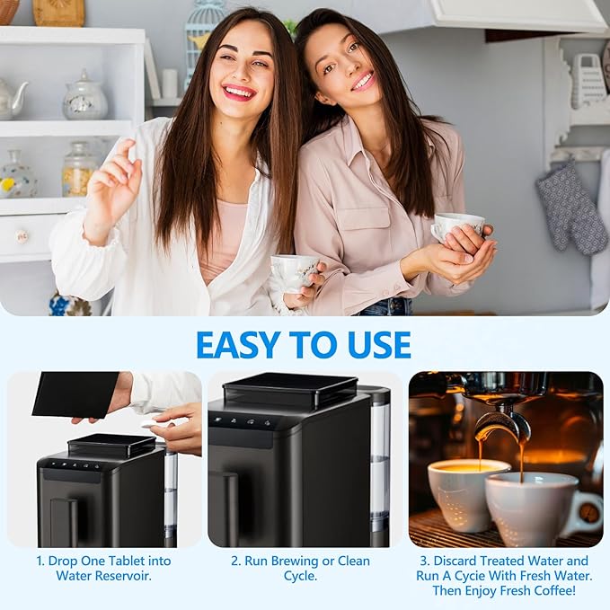- Easy to Use: Drop one coffee machine cleaner tablet into coffee machine, Run Brewing or clean cycle, discard treated water and run a cycle With fresh water. Then enjoy fresh coffee! Using our coffee pot cleaner and descaler tablets regularly to keep your coffee maker running like new