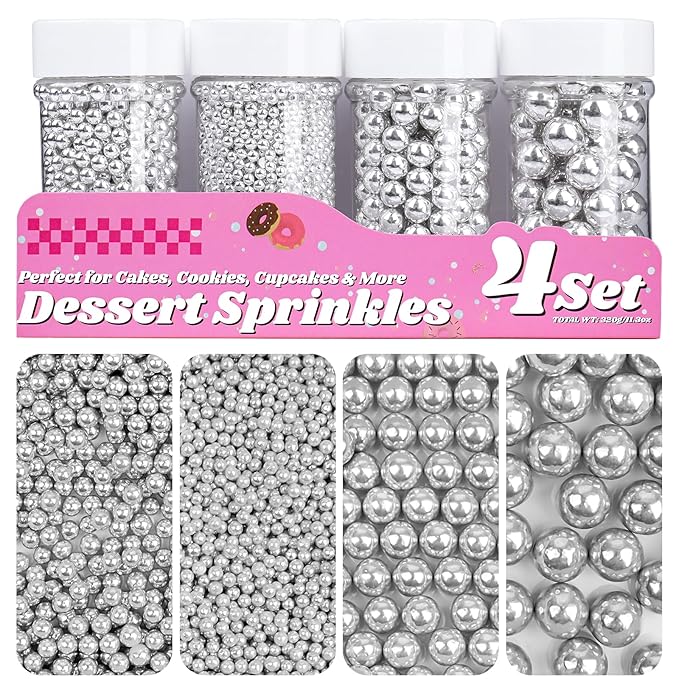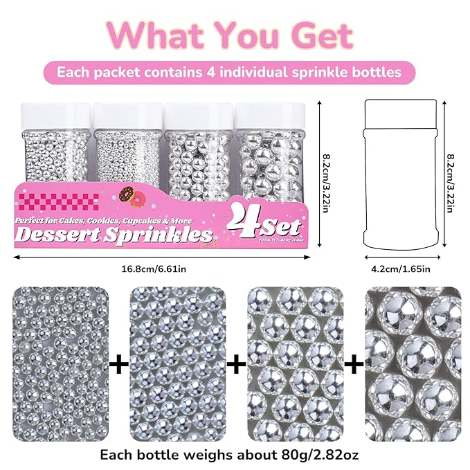 - 【Versatile for Every Sweet Creation】Silver sprinkles for cake decorating elevates cupcakes, macarons, cookies and ice cream. Perfect for weddings, birthdays, Christmas, Halloween and DIY dessert bars