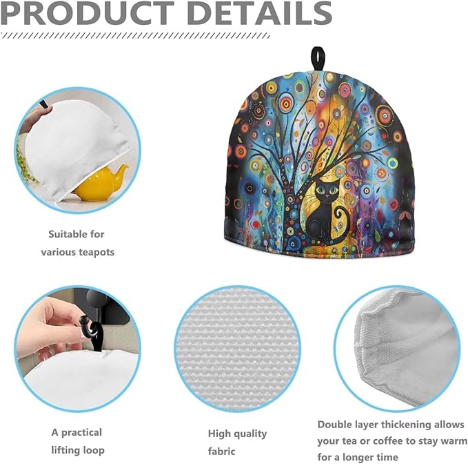 Tea Cozy for Teapot Novelty Modern Art Cat Tea Kettle Cover Tea Pot Kitchen Decorative with Handle Dust Cover for Keeping Warm Can Hung and Folded