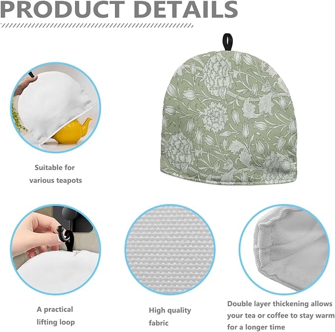 Teapot Dust Cover Tea Cozy for Teapot,Foldable Kitchen Kettle Dust Tea Pot Decorative Cover for Kitchen,Tea Cosy with William Morris Green