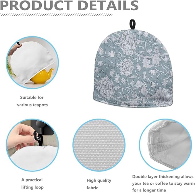 Blue William Morris Pattern Tea Cozy Kitchen Kettle Dust Cover Washable Teapot Dust Tea Kettle Cover for Tea Pot Christmas Decorative Kitchen竊뉰lue竊?"<div>