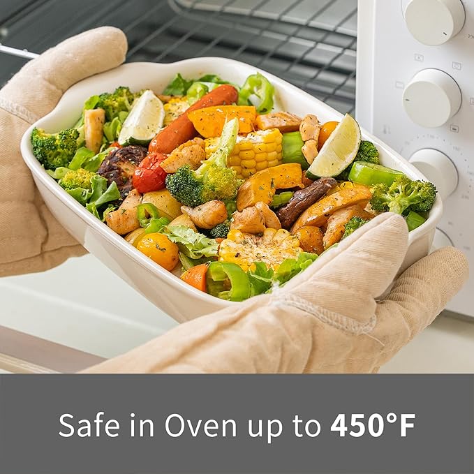 - 【EASY TO CLEAN AND DURABLE】Interior and exterior glaze protect baking pans against stains, making them easy to clean by dishwasher or hand. Coloured glaze of food-grade high quality porcelain will not fade, it can maintain bright colors and service life for a longer time.