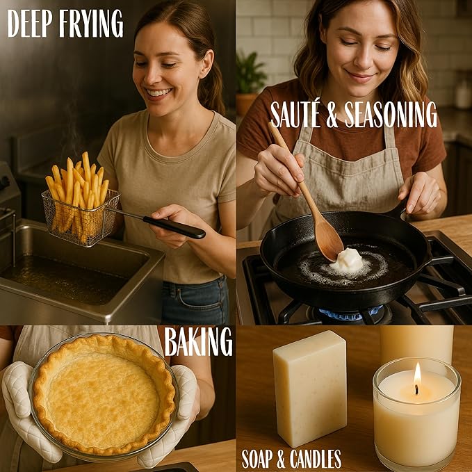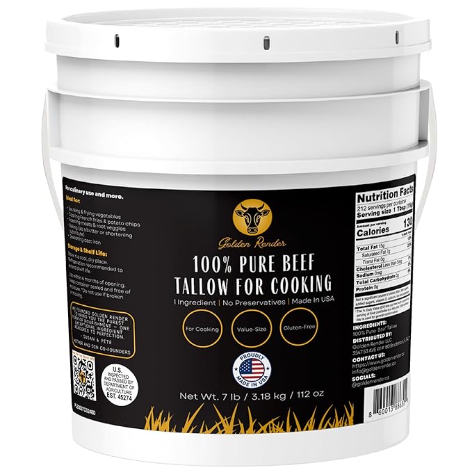 - Versatile 7lb Bulk Size - Get more premium tallow for your money in a convenient bulk container. Perfect for deep frying, sautéing, baking, roasting, or seasoning cast iron pans. Clean, nutrient-rich cooking fat that fits paleo and keto lifestyles. High smoke point to support high temp cooking! Can also be used for DIY candles, soap, & skin care.