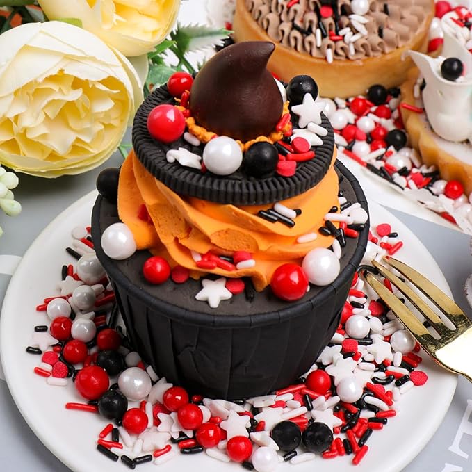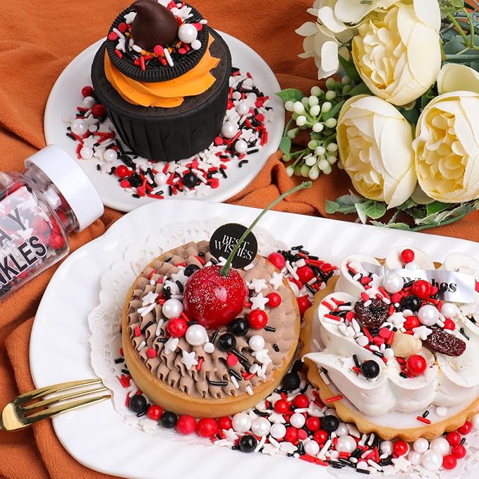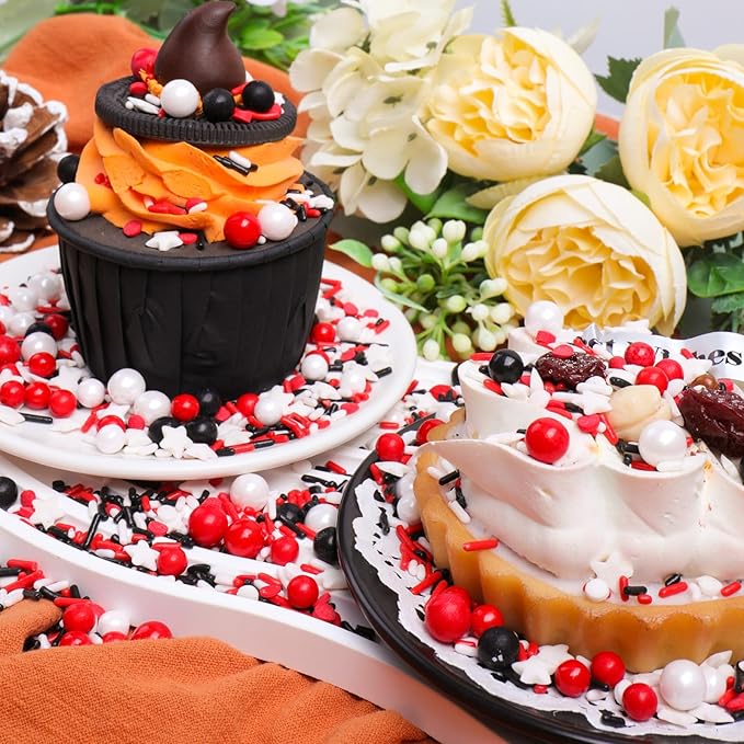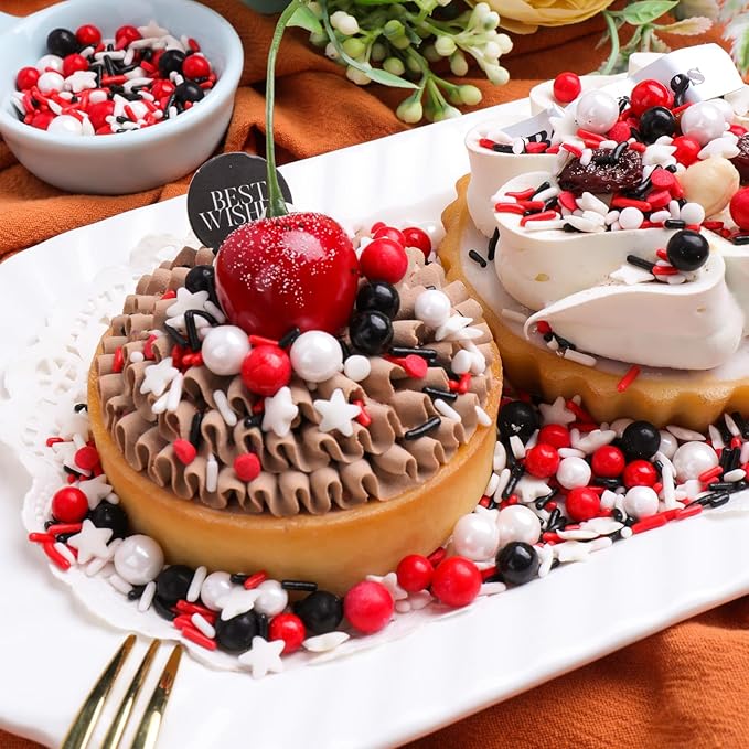 Red White and Black Sprinkles for Cake Decorating, Edible Sprinkle Mix, Perfect for Cake Decorations, Baking, Ice Cream, Cookies, Cupcake Toppers
