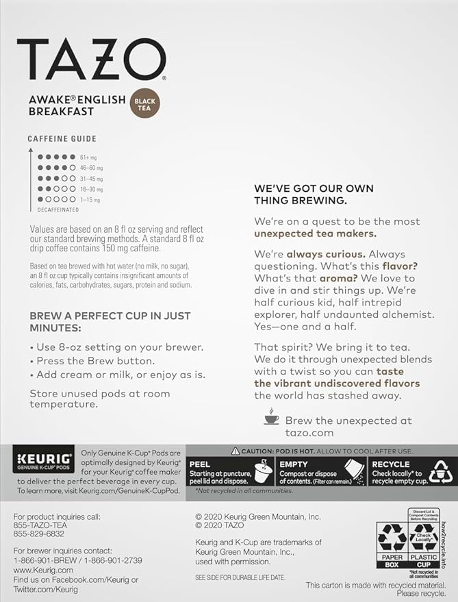 - Convenient K-Cup Pod Format: Enjoy TAZO’s bold tea blends brewed effortlessly in your Keurig or compatible single-serve brewer—no steeping or cleanup required.