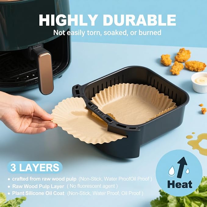 - Hassle-Free Design: With pre-cut 8-inch square sizing, these liners eliminate guesswork and extra steps. and keep your appliance clean—all while making cooking and cleanup quicker and easier.