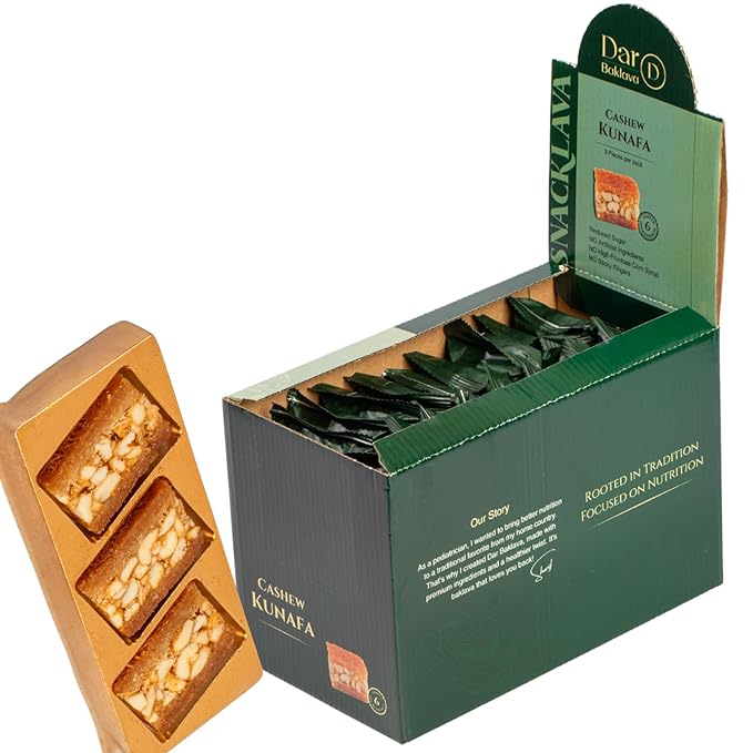 Snacklava Cashew Kunafa Bites - 20 Pack (3 Pieces per Pack) - No Artifical Ingredients, Colors or Preservatives