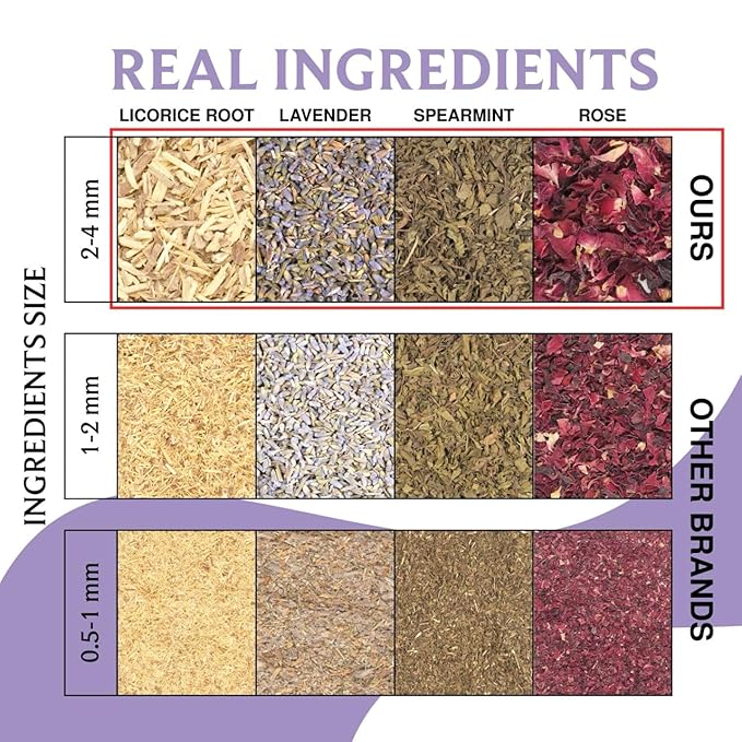 - HAND SELECTED AND HAND BLENDED - Each blend is made with love and care and all our teas and herbs are selected carefully by trained experts to ensure only the best leaves make it to the blending table. The blends are hand blended in small batches to ensure consistency. Small batches and hand blending help ensure the ingredients stay intact and do not break, which is the case when blended in machines.