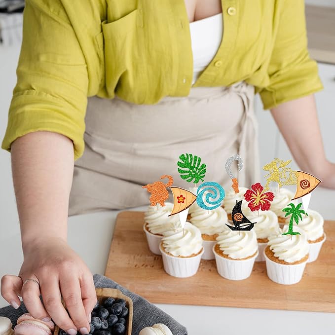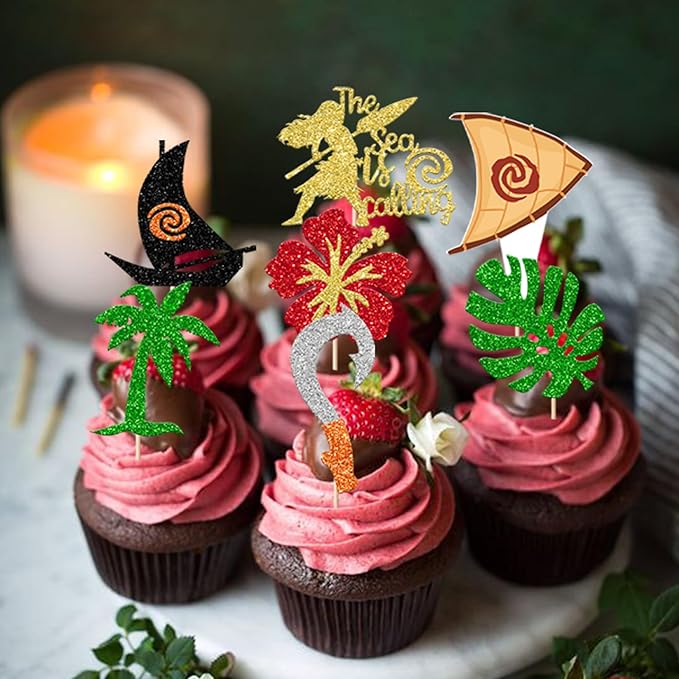 - APPLICATION:Perfect decoration for cupcakes,cookies,cakes,fruits,brownies,ice cream and more,particularly suit to use on moana theme party decorations, hawaiian party decorations, baby shower party supplies.