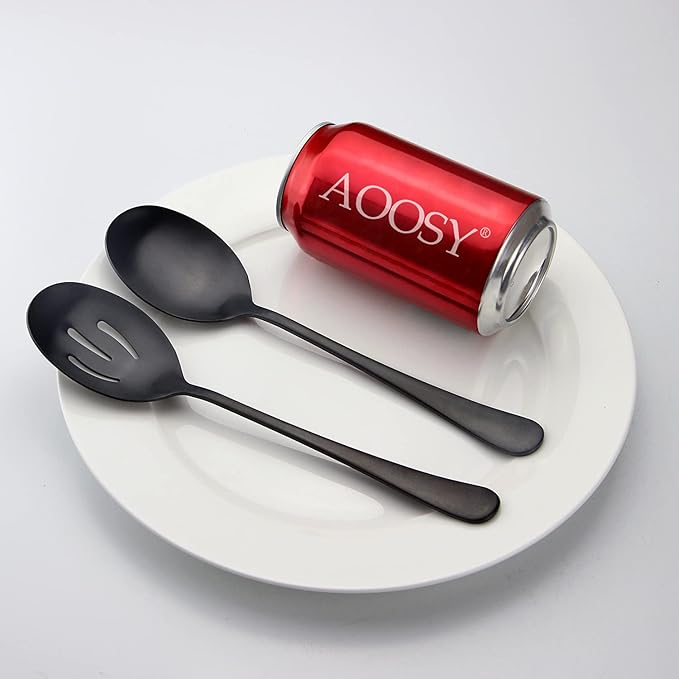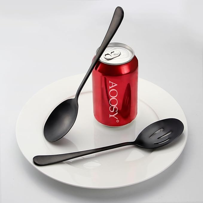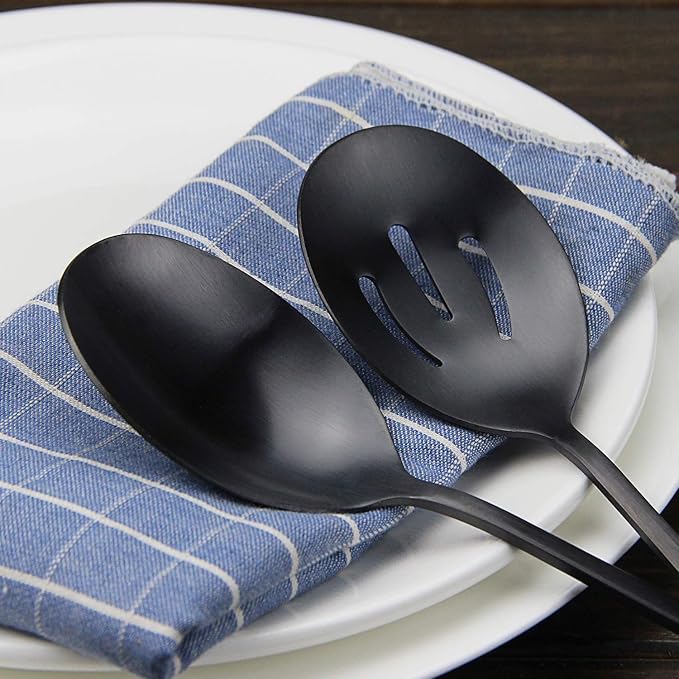 - PREMIUM DESIGN: Elegant black serving set includes 2 serving spoons and 2 slotted spoons, perfect for buffets, dinner parties, and everyday use