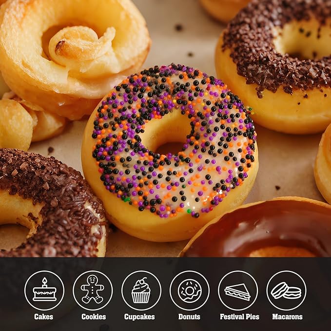 - 【Vibrant Mix Sprinkles & Excellent Value】: This generous 12oz pack features a spirited Halloween mix of colors (like classic orange, black, purple, and green ). The small nonpareils sprinkles are easily adhere to frosting, icing, chocolate, and fondant. One bottle sugar sprinkles to generously decorate 8-10 cupcakes or a large layer cake, offering outstanding value for your Halloween baking adventures!