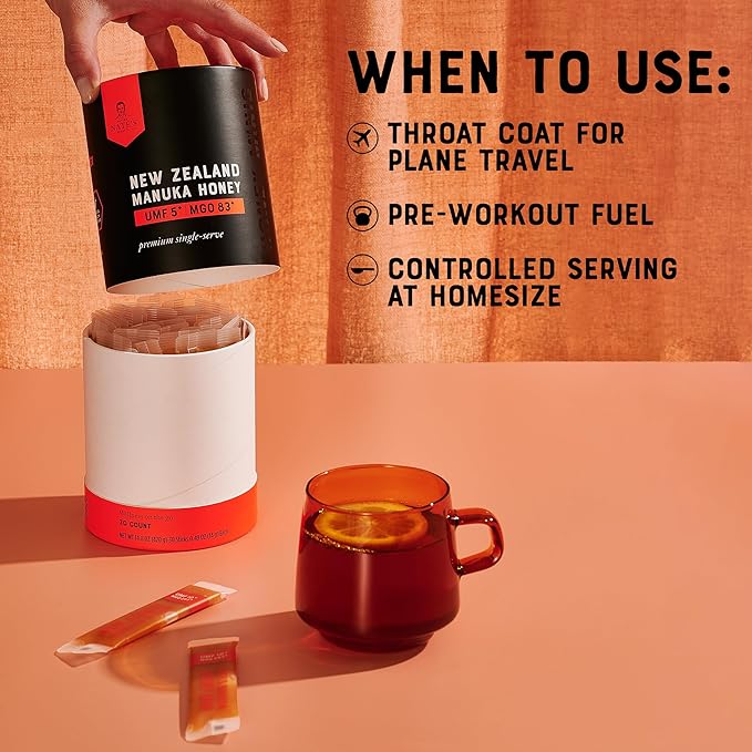 - MANUKA ON-THE-GO: No mess, no spoon—just grab and go! Perfect for travel, workouts, or daily wellness, these convenient packets deliver a powerful boost of premium Manuka honey anytime, anywhere. Fuel your busy lifestyle with pure, packable goodness.