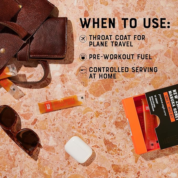 - MANUKA ON-THE-GO: No mess, no spoon—just grab and go! Perfect for travel, workouts, or daily wellness, these convenient packets deliver a powerful boost of premium Manuka honey anytime, anywhere. Fuel your busy lifestyle with pure, packable goodness.