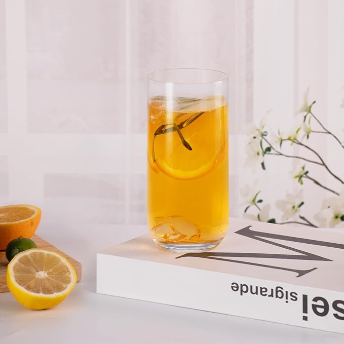 - 【Meticulous Design】The highball glass with a broad and flat base ensures stability and prevents tipping. The wide rim allows smooth sipping, easy addition of ice, fruit slices (e.g., lemon, strawberry), or straws, and effortless stirring. The full-bodied contour fits comfortably in the palm for a secure and pleasant grip.