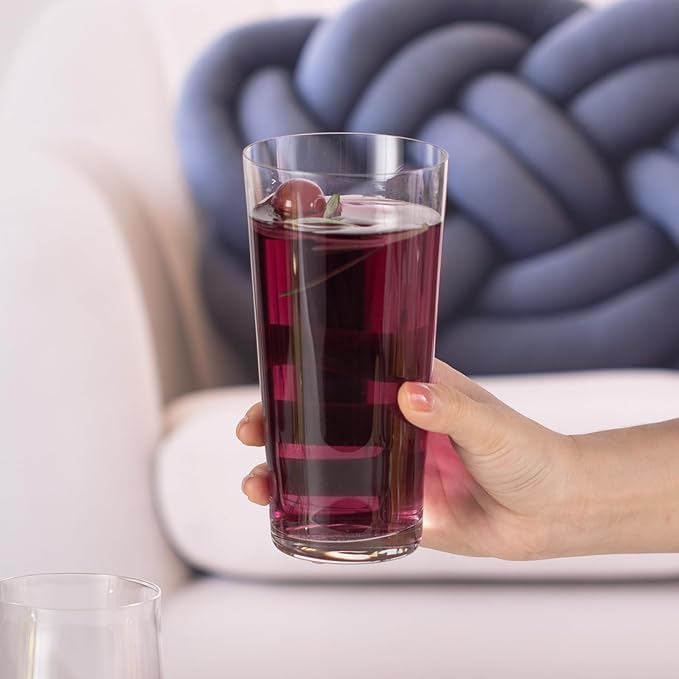 - 【Meticulous Design】The highball glass with a broad and flat base ensures stability and prevents tipping. The wide rim allows smooth sipping, easy addition of ice, fruit slices (e.g., lemon, strawberry), or straws, and effortless stirring. The full-bodied contour fits comfortably in the palm for a secure and pleasant grip.