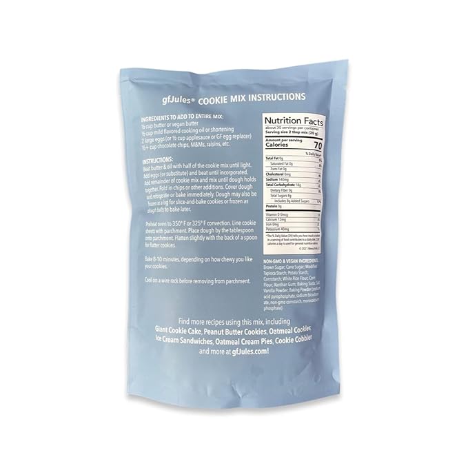 - NEVER GRITTY: gfJules Cookie Mix is not a rice flour based mix, like most of the other brands. So, they are never flat, oily, gritty or crumbly.