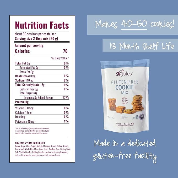 - EASY TO MAKE: gfJules 22 ounce mix make 40-50 cookies. You can even freeze the dough for scoop-and-bake convenience.
