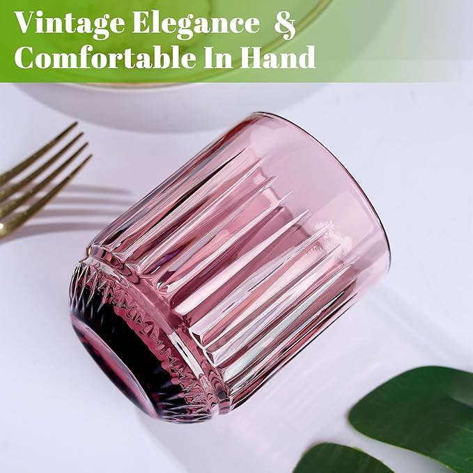 Joeyan Vintage Small Drinking Glasses,9 oz Ribbed Colored Water Cocktail Tumblers Cups,Beer Wine Juice Milk Beverages Glassware,Set of 4,Dishwasher Safe