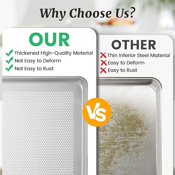 - Pro & Home Use - the 13"x18" half-sheet fits home ovens for daily baking, while the 18"x26" full-sheet handles commercial high-volume tasks effortlessly.