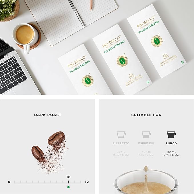 - NESPRESSO COMPATIBLE PODS - Enjoy delicious cafe quality roasted coffee, brewed fast and poured steaming hot & fresh directly into your awaiting cup. Piu Bello Nespresso capsules are compatible with Nespresso Original line espresso machine.