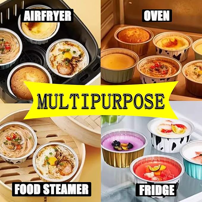 - Convenient & Reusable: Designed as both disposable ramekins and reusable flan cups with lids, they're oven-safe up to 428°F (220°C). No baking tray needed—just fill, bake, and serve directly in these mini aluminum pans with lids