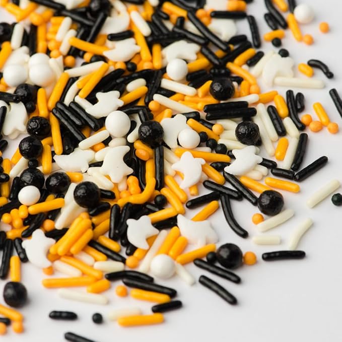 - FUN & FESTIVE COLORS – Includes orange, black, and white sprinkles inspired by classic Halloween treats. Bright, bold, and 100% edible.