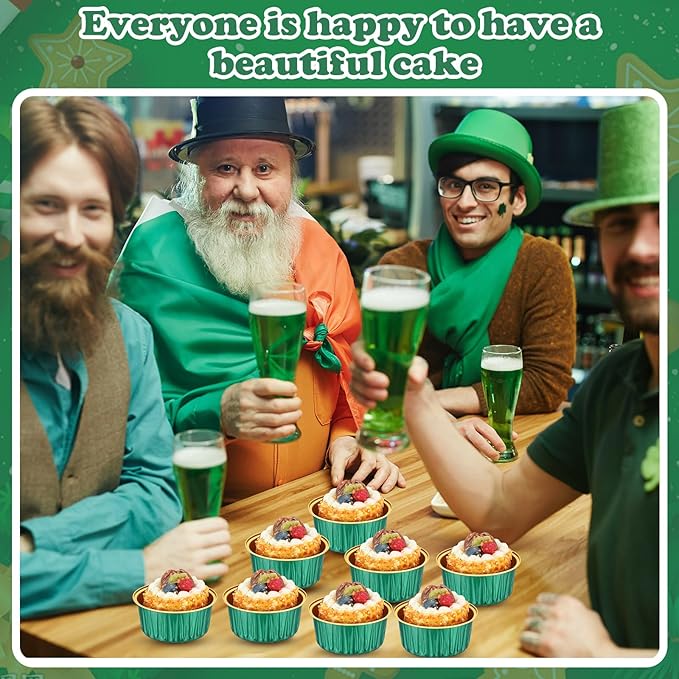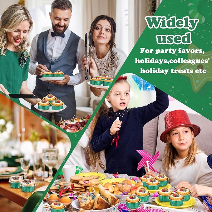 Gejoy 400 Pcs Aluminum Foil Baking Cups with Lids 5 oz Disposable Ramekins Mini Cake Pans Creme Brulee Cupcake Liners Muffin Tins Flan Mold Dessert Container for Wedding (Dark Green,Gold,Classic)