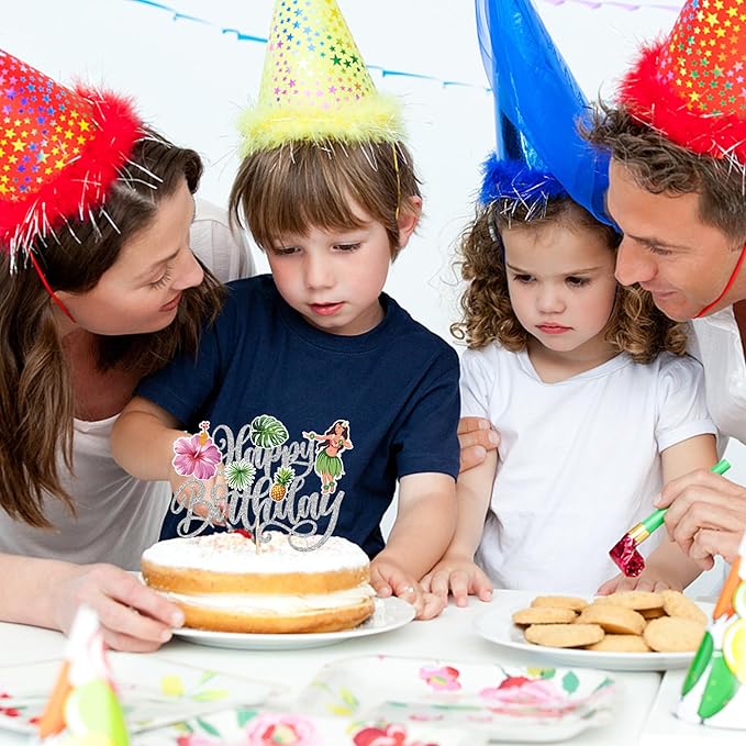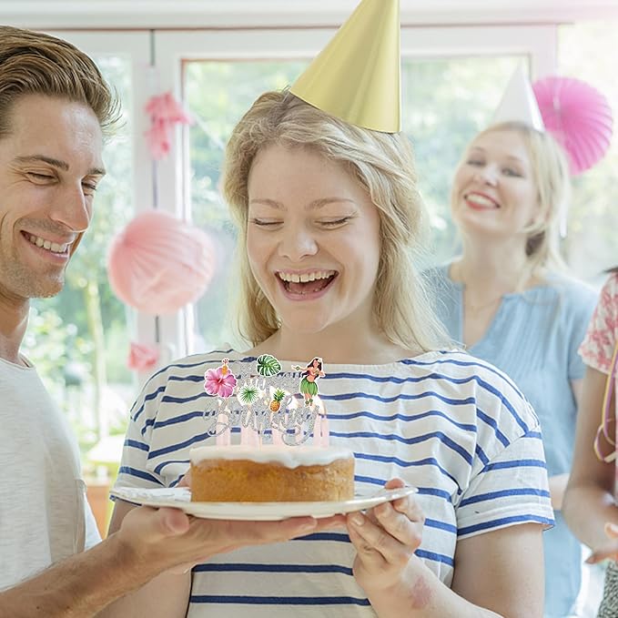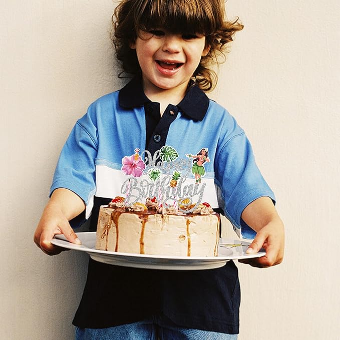 - Package and Size: Includes 1 pcs tropical hawaii theme happy birthday cake topper. 1 pcs / card.
