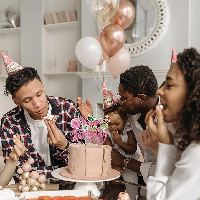 - Package and Size: Includes 1 pcs tropical hawaii theme happy birthday cake topper. 1 pcs / card.