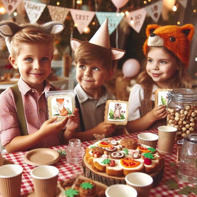 - These beautiful decorated cookies will be a terrific addtion to your Woodland themed party and will delight both kids and adults! Whether as party favors, on a sweet table, or in a treat bag, they're the perfect addition to your baby shower or birthday celebration. Our fun set of cookies also makes a pretty and scrumptious gift as well that everyone is sure to love. With their fun designs and irresistible flavors, our cookies are the ultimate treat for your event!