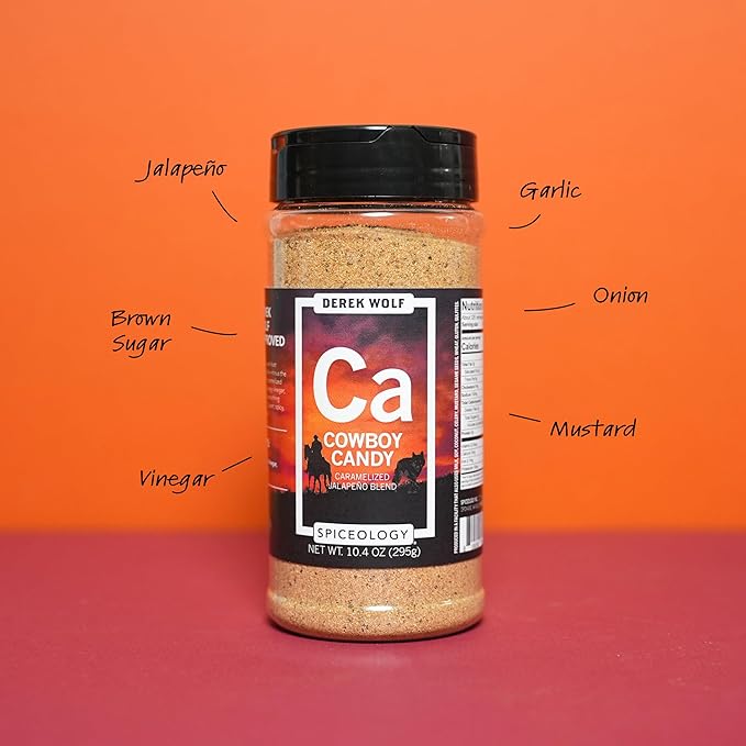Spiceology – Derek Wolf Cowboy Candy Seasoning – Sweet & Spicy Jalapeño Spice Blend – Gourmet Rub for Grilling, Smoking, BBQ, Meat & Veggies – Freshly Ground – 10.4 oz
