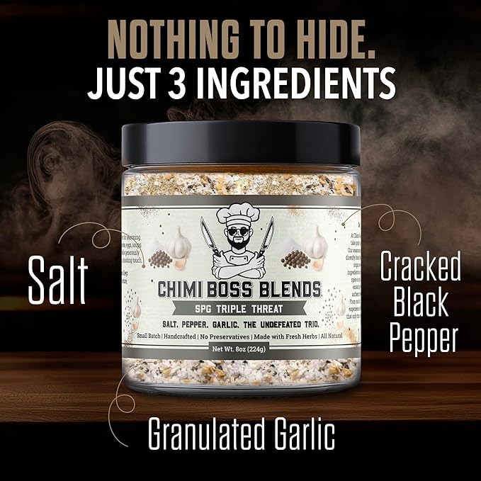 Chimi Boss Blends SPG Seasoning, 8oz ??Salt Pepper Garlic Dry Rub for Grilling, Smoking & BBQ ??Gourmet Small-Batch All-Purpose Spice Blend for Beef, Pork, Chicken & Vegetables ??Made in USA