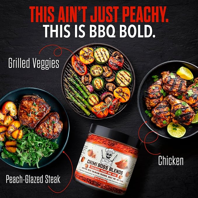 - SWEET & SMOKY BBQ PERFECTION – Made with real Palisade peach powder, smoky paprika, garlic, and aromatic spices, this BBQ seasoning delivers a crave-worthy balance of sweet fruitiness and smoky depth that makes chicken, pork, ribs, and vegetables shine on the grill or smoker.