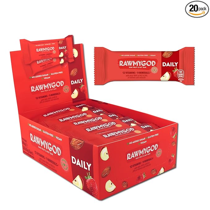 RAWMYGOD Fruit and Nut Bars, Gluten Free, Vegan, No Added Sugar (20 bars, Daily)